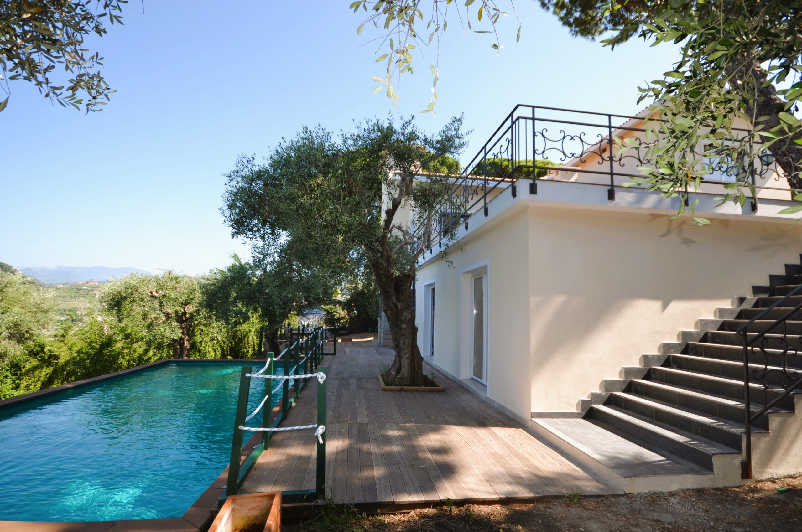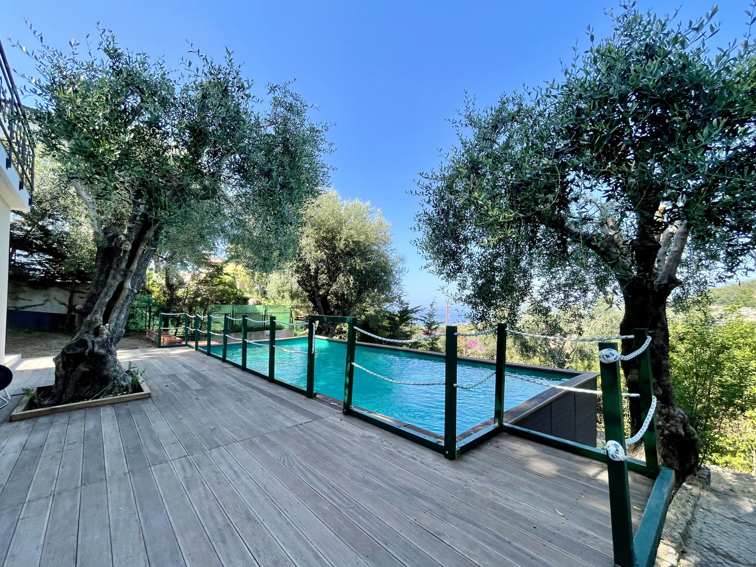 Immersa nel verde di un ampio giardino contornato da ulivi, la proprietà gode di una vista mare mozzafiato e di una perfetta esposizione al sole.
